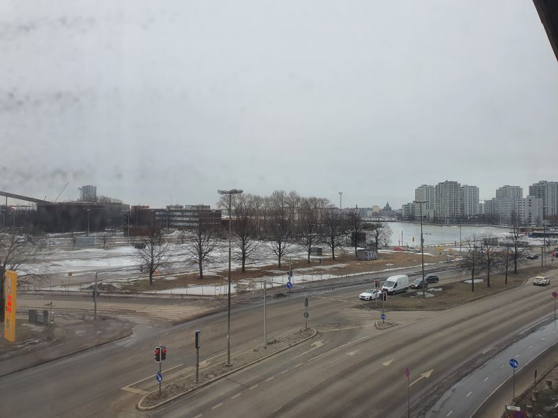 Tähän 4. krs toimistotilaan astut suoraan kahdesta hissistä. Merinäköala Hanasaaren suuntaan.