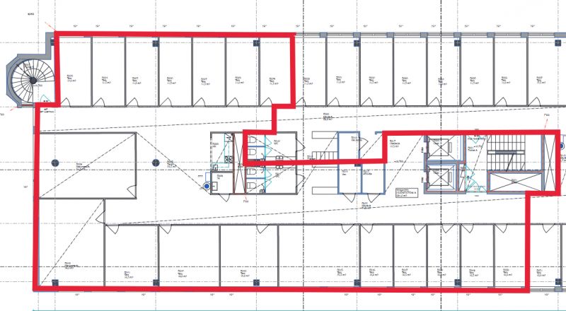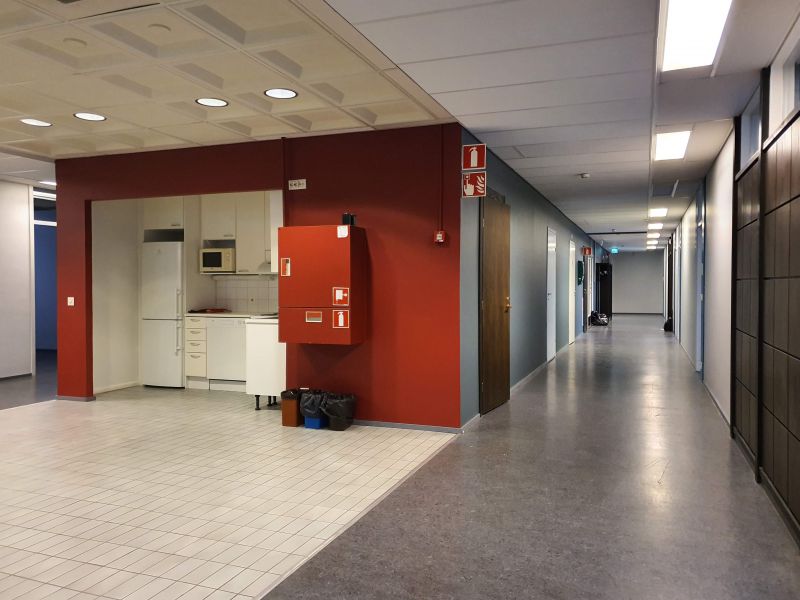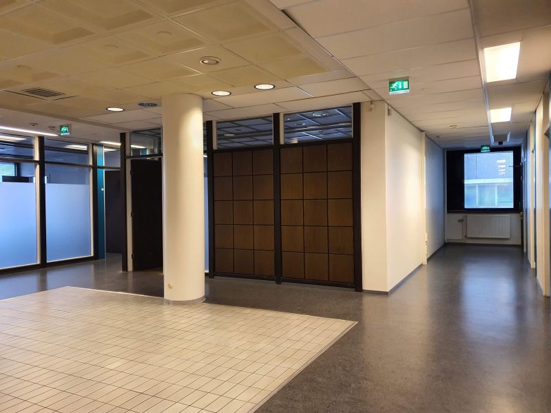 Tilassa useita eri kokoisia toimistohuoneita, neuvottelutila, keittiö, wc-tila ja suihku. Huonekorkeus: 3,2 m.