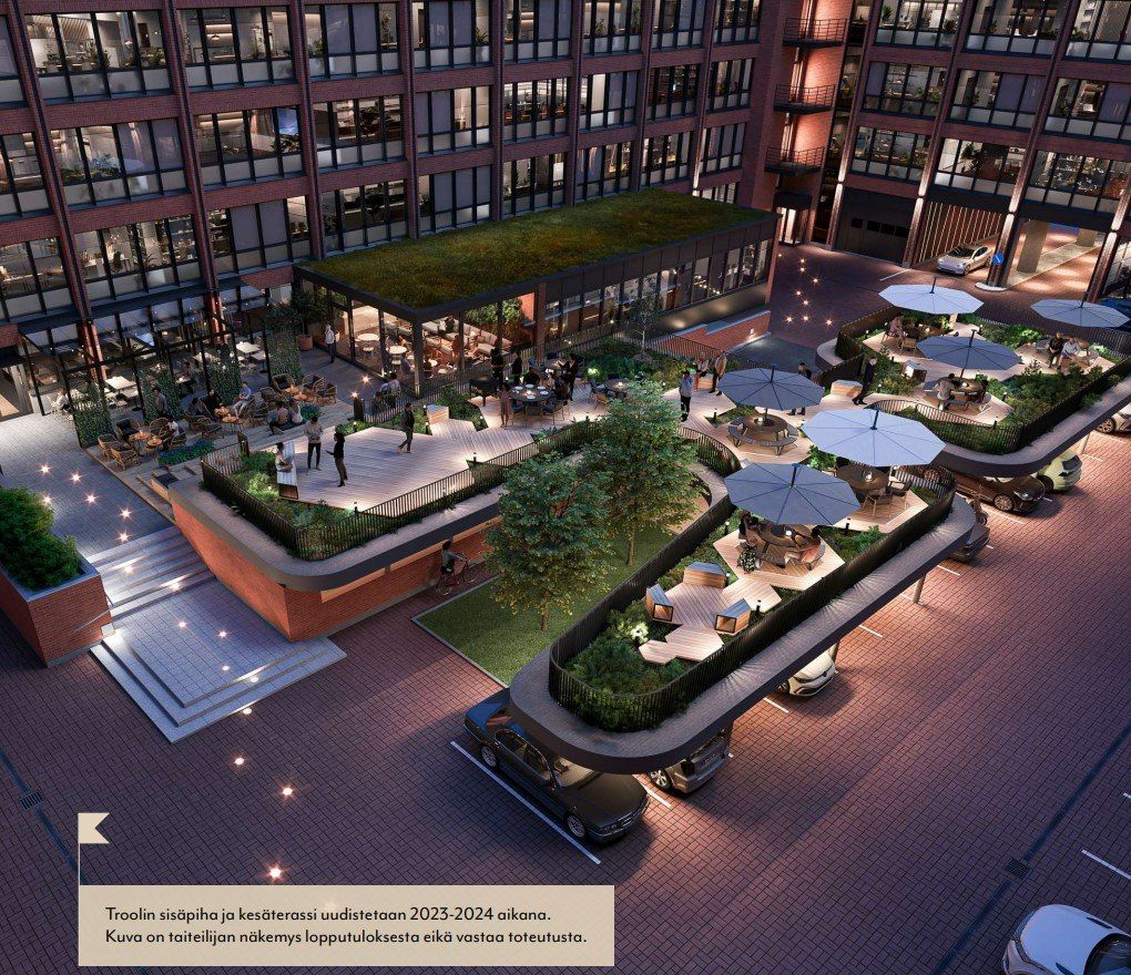Troolin omien palveluiden lisäksi ympäristössä on runsaasti lisää palveluita - maukkaita ravintoloita Teurastamolla ja tapahtumia Suvilahdessa, REDIn arjen palvelutarjonta, metroasema muutaman minuutin kävelyn päässä sekä loistavat pyörätiet.