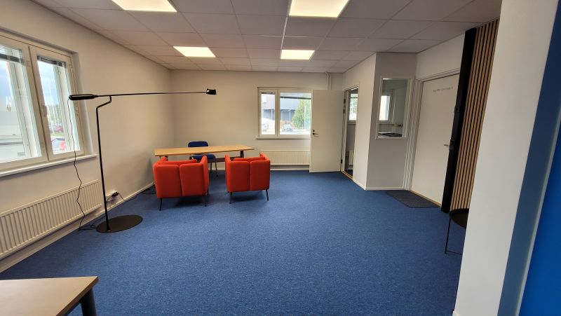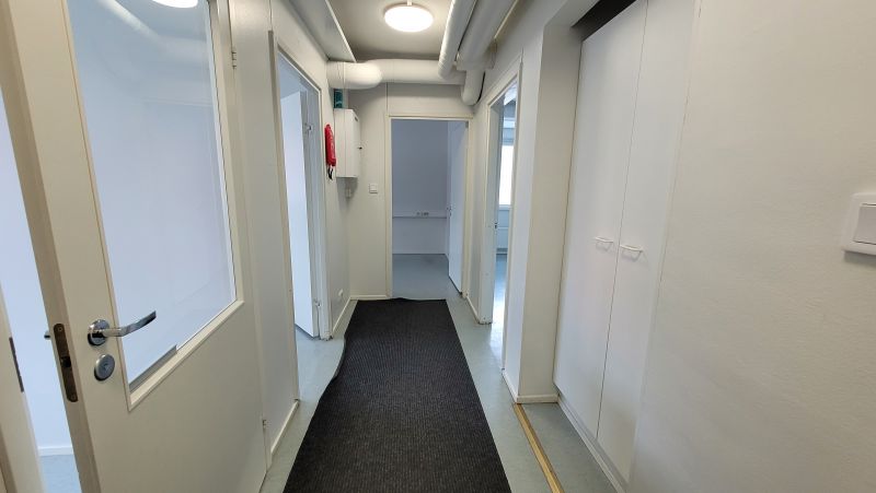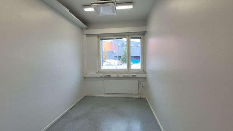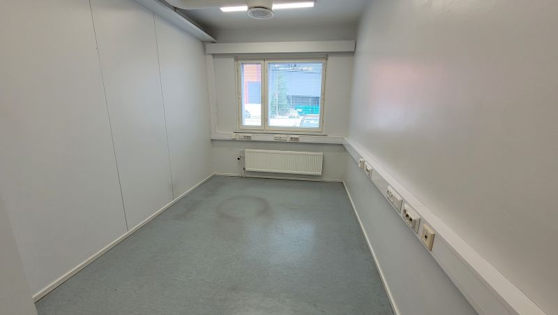 Tila muodostuu 56 m2 ja 38 m2 tilasta. Isommassa tilassa on neljä toimistohuonetta ja eteinen. Pienempi tila on yhtenäistä ja juuri remontoitua tilaa, jossa on äänieristetty puhelinkoppi. Tilat yhdistettävissä vuoden vaihteessa 2024/2025 vapautuvaan n. 560 m2 liiketilaan. Kiinteistöllä hyvin pihatilaa. Alakerrassa saunaosasto ja erilaisia varastotiloja.