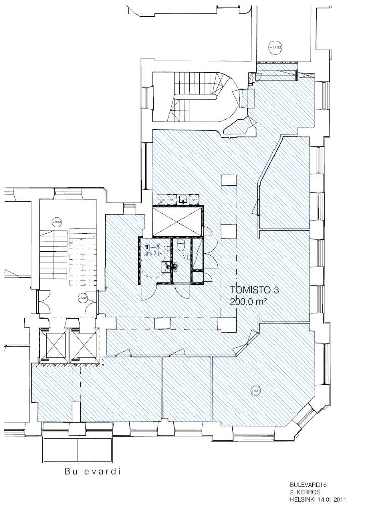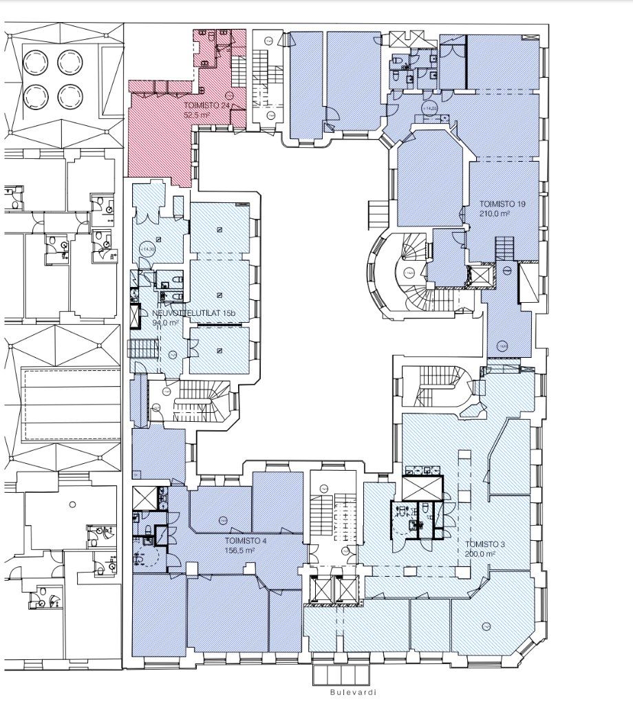 Vuokrattavana laadukas 200 m² toimistotila Helsingin ydinkeskustasta, Bulevardin kulmassa, kiinteistön 2. kerroksessa.