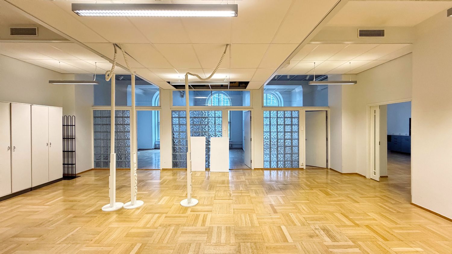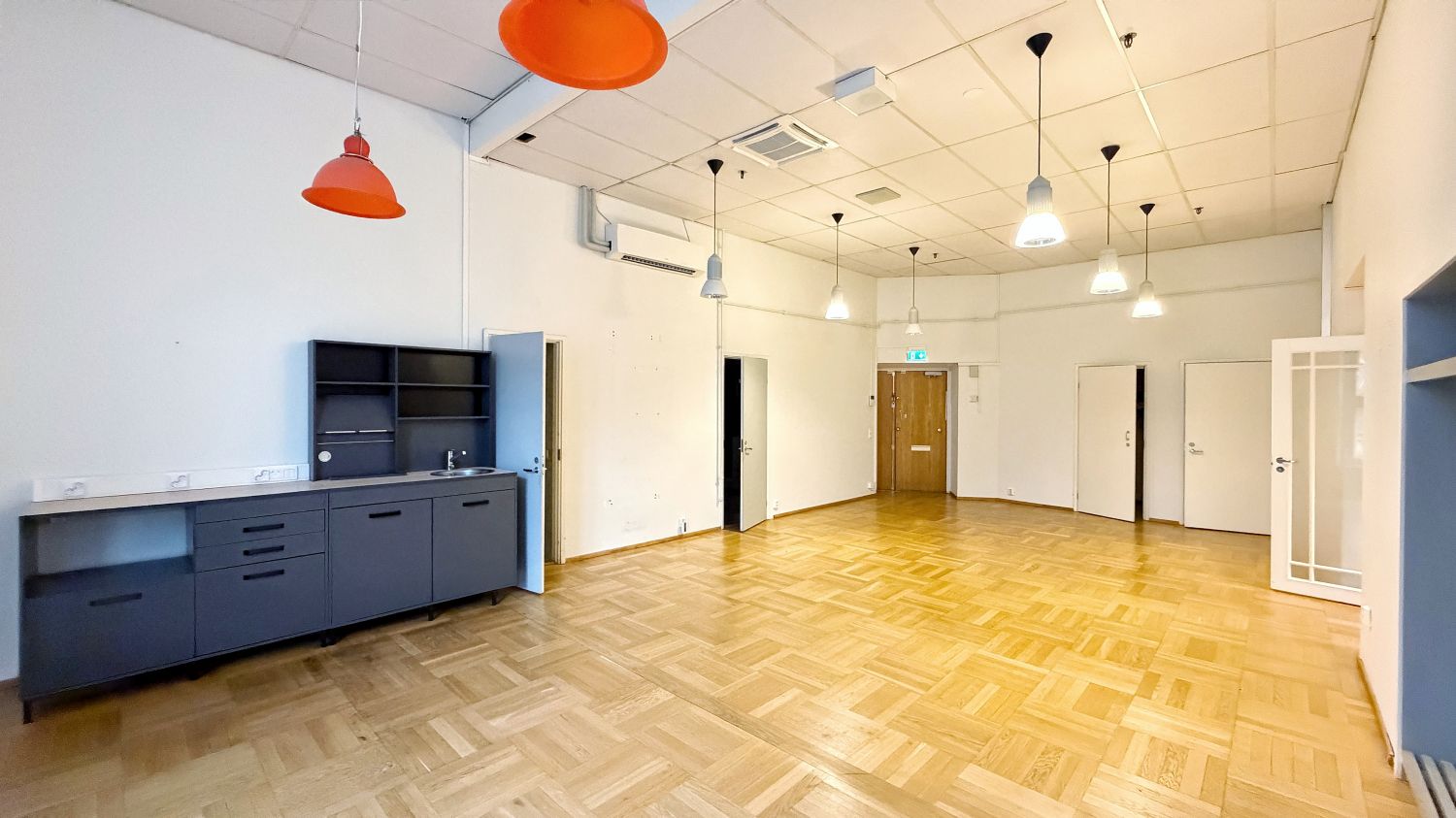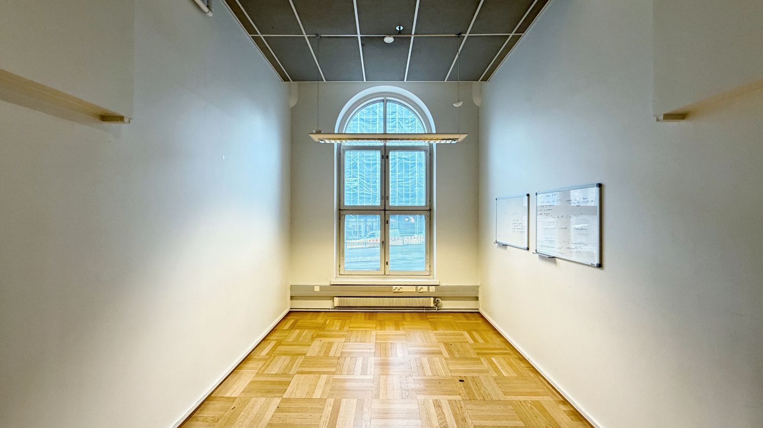 Valoisa toisen kerroksen toimistotila Bulevardin kulmassa.