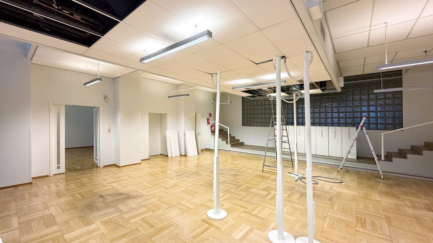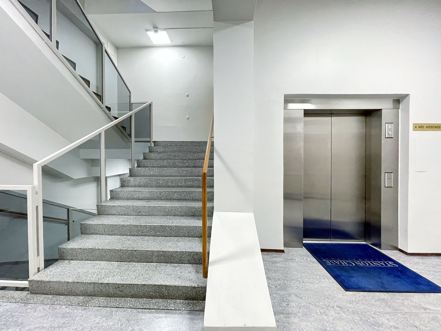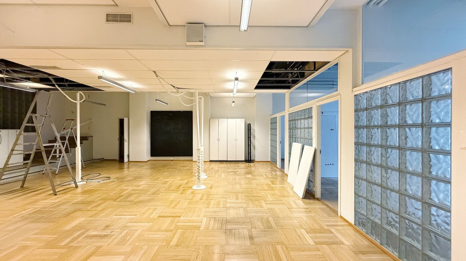 Valoisa toisen kerroksen toimistotila Bulevardin kulmassa.