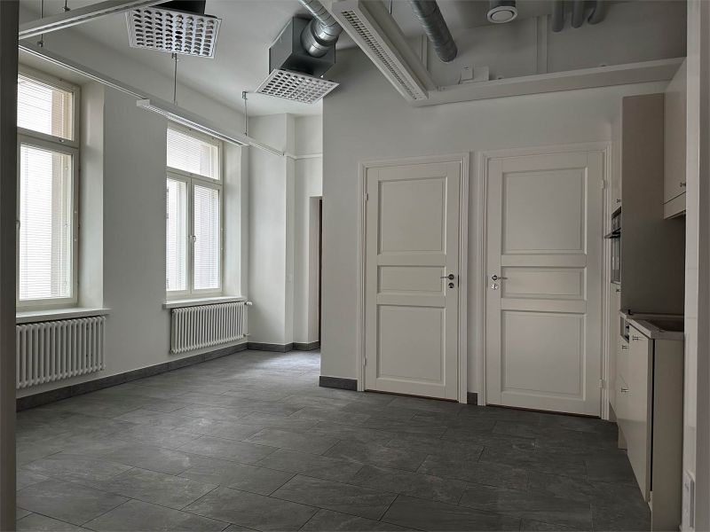 Muutaman minuutin kävelymatkan päässä Kampin kauppakeskuksesta ja Rautatieasemalta vapautuu persoonallinen liiketila korkeine ikkunoineen vuokrattavaksi. Tilat jakautuvat eri tasanteisiin ja portaat sijoittuvat liiketilan keskelle. Alatasanne on kadun puolella ja ylätasanne pihan puolella. Liiketilassa on kaksi wc:tä ja kolme sisäänkäyntiä eri tasanteilta.