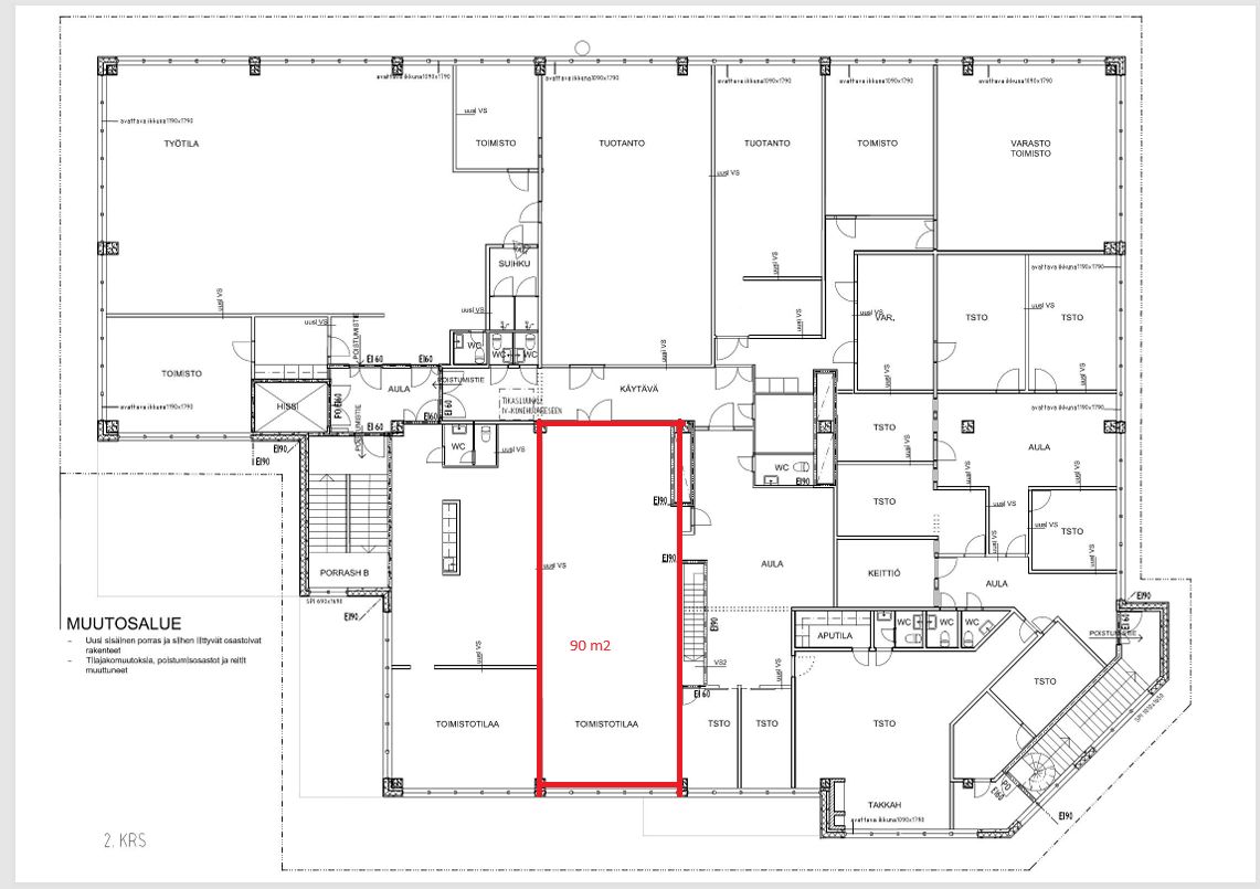 Vuokrataan Herttoniemessä n 90 m2 toimistotilaa, joka soveltuu myös pienimuotoiseen varastointiin tai tuotantoon.Tila toisessa kerroksessa mihin tavahissiyhteys. Tilassa minikeittiö, vessat käytävällä.