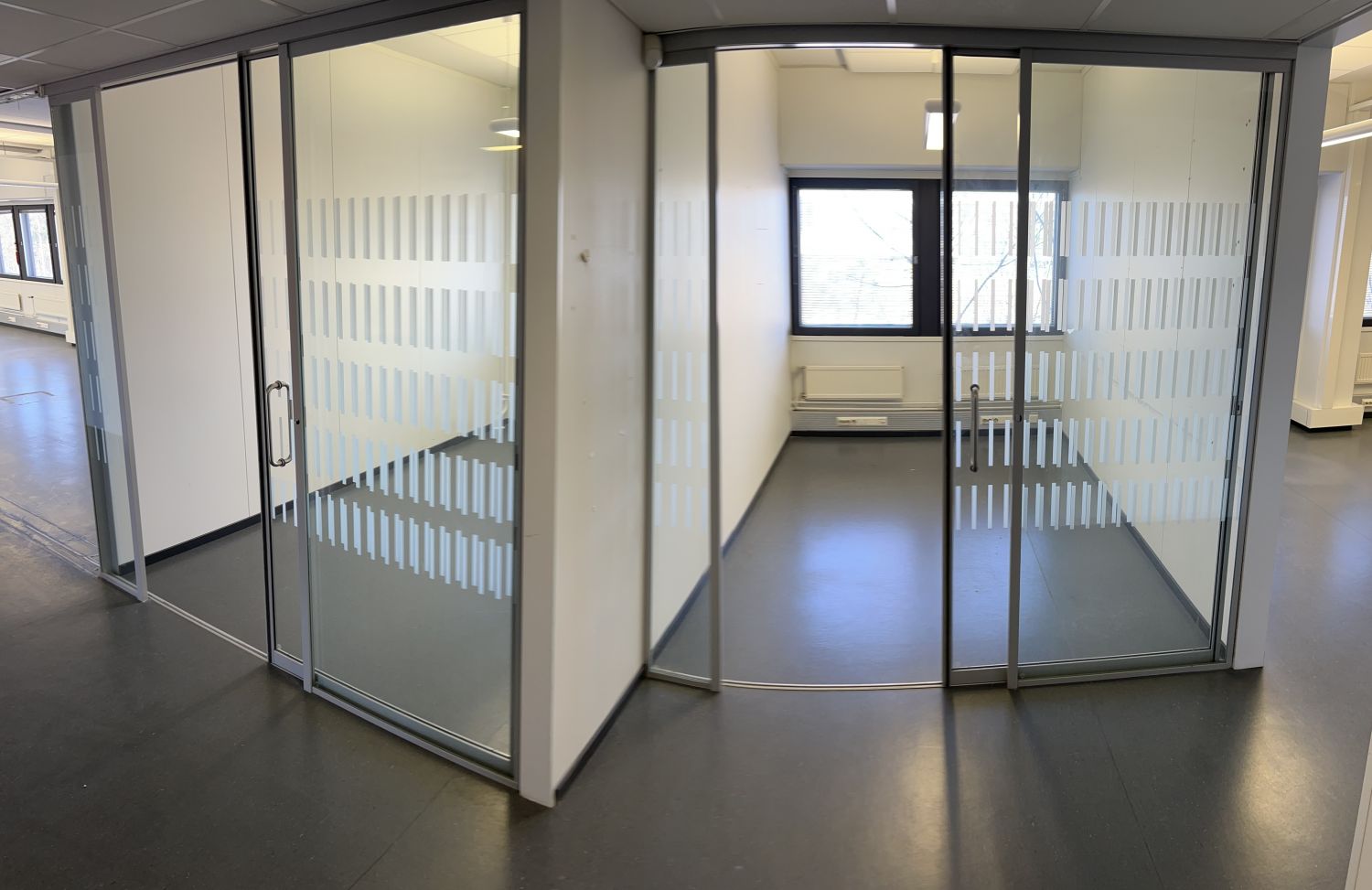 Toimistohuoneissa peruskorjauksessa uusittu korkeatasoisilla Lasi seinillä . Sekä turvaluokiteltuja tilojakin löytyy.