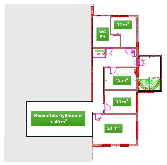 Tila soveltuu hyvin esim. yritykselle, joka etsii toimistotilaa Kuopion eteläpuolelta ja mihin on vaivaton saapua, myös asiakkaiden.