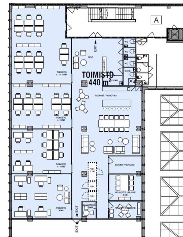 Tämä tyylikäs 440m² toimistotila sijaitsee kiinteistön 5. kerroksessa. Toimistossa on tilavia tiimihuoneita, neuvotteluhuoneita, tyylikäs avokeittiö ja omat wc-tilat. Toimiston ikkunat ovat Kaivokadun suuntaan ja sieltä on hienot näkymät Helsingin ylle.
