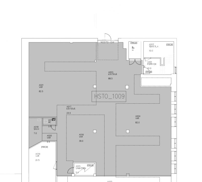 Entisessä pientuotantokiinteistössä kellarikerroksen tilava 329 m² varastotila jonne oma sisäänkäynti ajorampin kautta.