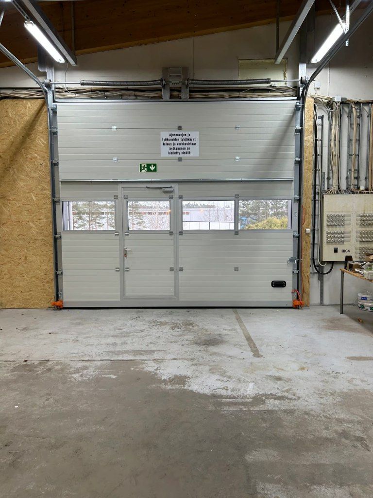Jokaisessa varastotilassa on oma nosto-ovi.