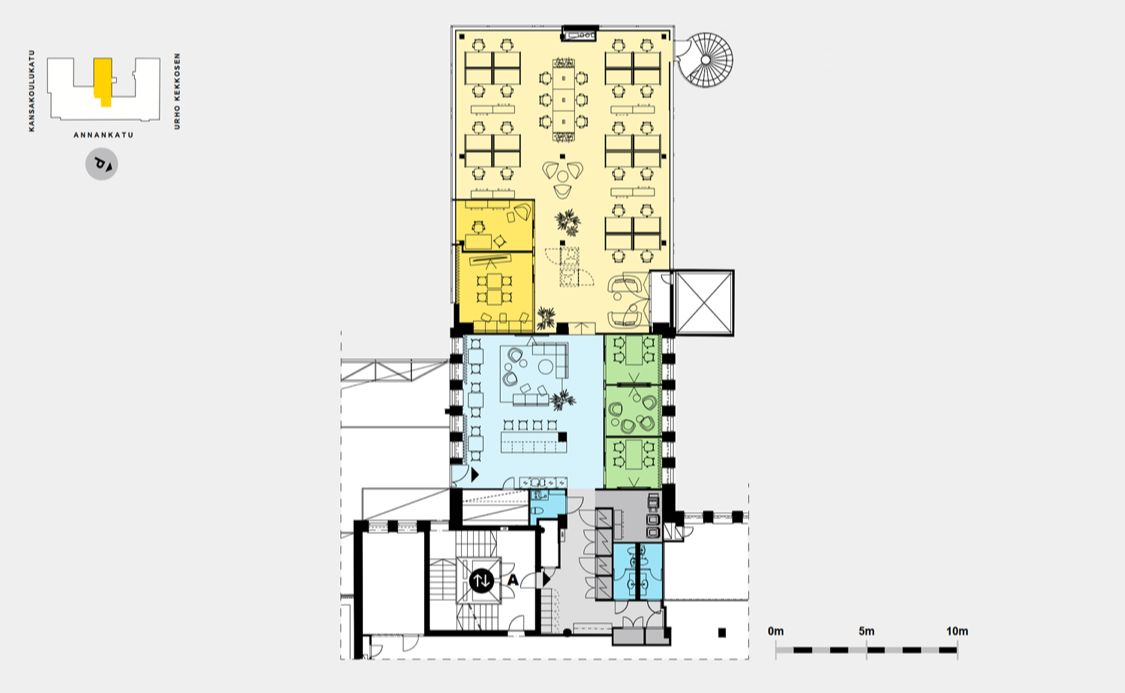 Vuokrataan valoisa sisäpihasiiven toimistotila, josta ei valoa ja avaruutta puutu. Toimistossa on working cafe lounge, kolme kompaktia neuvottelutilaa, avotyöalue, kaksi työhuonetta sekä kolme wc-tilaa ja varasto/kopiointitila.
