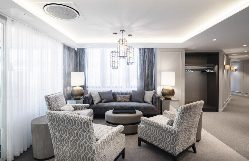 Kiinteistössä on myös ravintoloita ja mm. kuntosali.