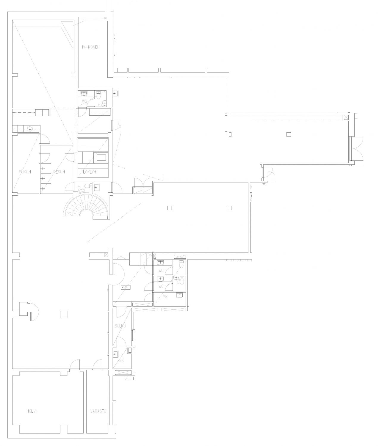 Katutason tilan lisäksi kellaritasosta löytyy tilaa n. 553 m2. Tilaa on mm. varastointitarpeeseen soveltuvaa avotilaa.