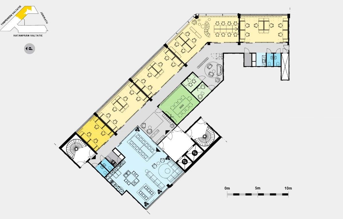 Tampereen keskustassa näyttävällä paikalla kattavan palvelun toimistotiloja. Nykyaikaiset toimistot ovat muunneltavissa yrityksen tarpeisiin.