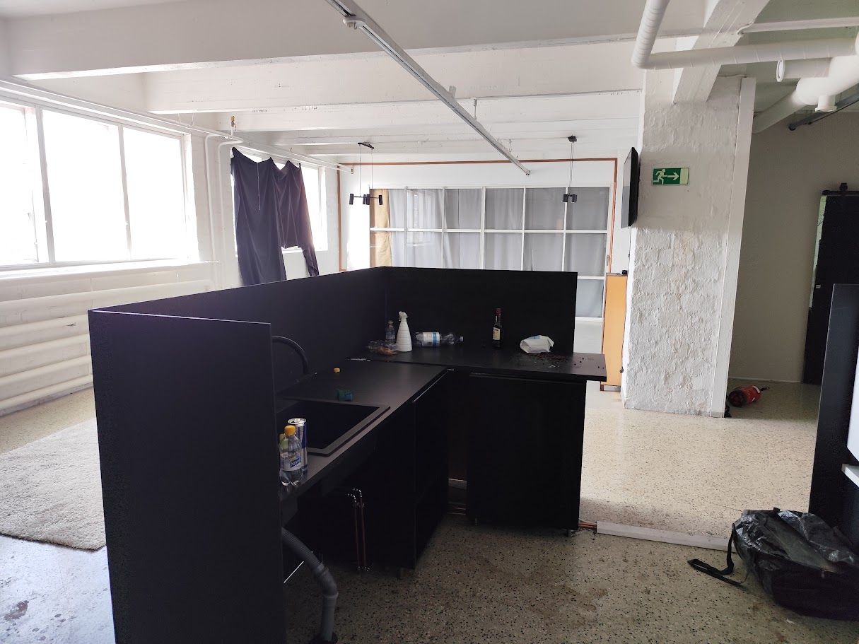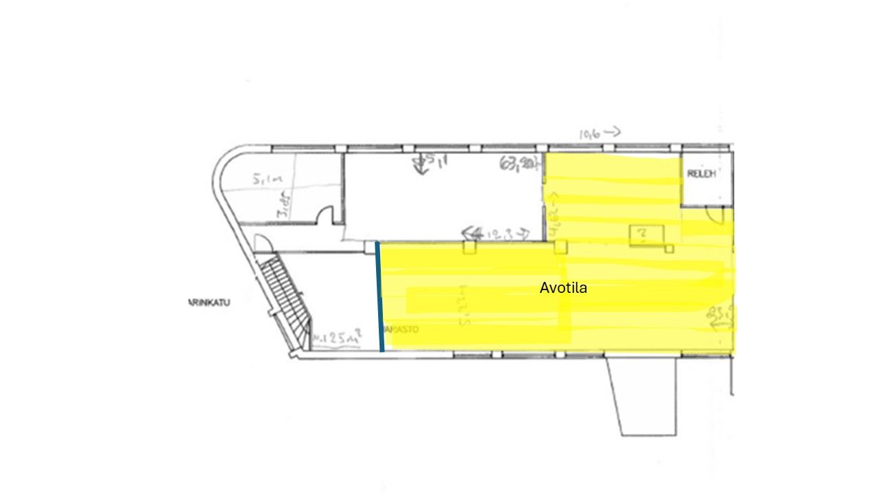 Sopenkorvessa olevan teollisuuskiinteistön 4 kerroksessa vapaana oleva avotila n 130 m2. Tilassa on pieni keittiö, wc ja erillinen pieni varastohuone. Tilaan on suora pääsy tavarahissillä kiinteistön sisäpihalta. Kerroksen pohjakuvaan tämä tila on merkitty keltaisella.