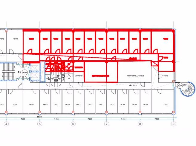 Kyseinen 273 m2 kokoinen toimisto sijaitsee kiinteistön 3. kerroksessa. Tila on huoneellinen, mutta sitä voidaan muunnella yrityksen tarpeiden mukaan. Toimistossa on omat wc-tilat ja pieni keittiö. Kiinteistössä on koneellinen ilmanvaihto.