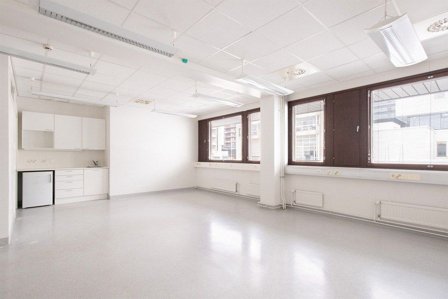Toimistotila on yleisilmeeltään siisti. Tiloissa on ennen mm. toiminut lääkäriasema.