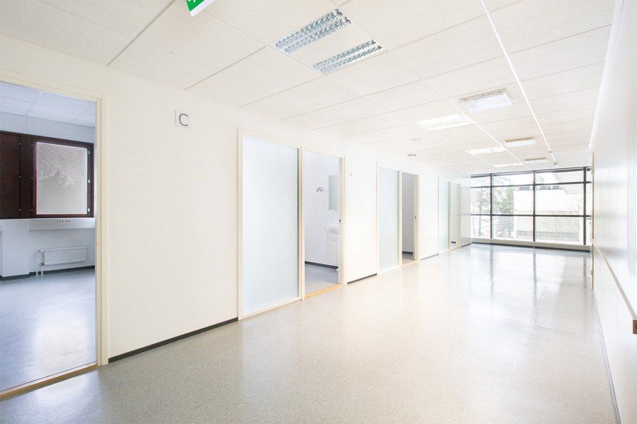 Toimistotila on yleisilmeeltään siisti. Tiloissa on ennen mm. toiminut lääkäriasema.