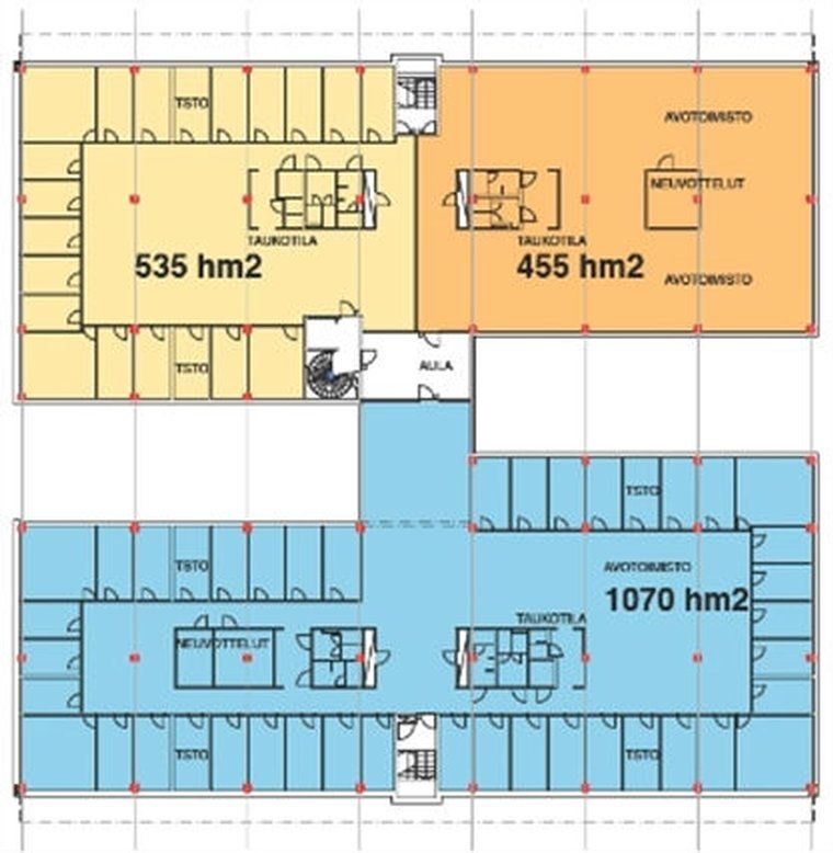 Toimistotila on yhteensä 2060 m2, ja se on jaettavissa puoliksi kahteen eri tilaan. Vuokrataan kokonaisuutena, puolikkaina tai neljännesosana.