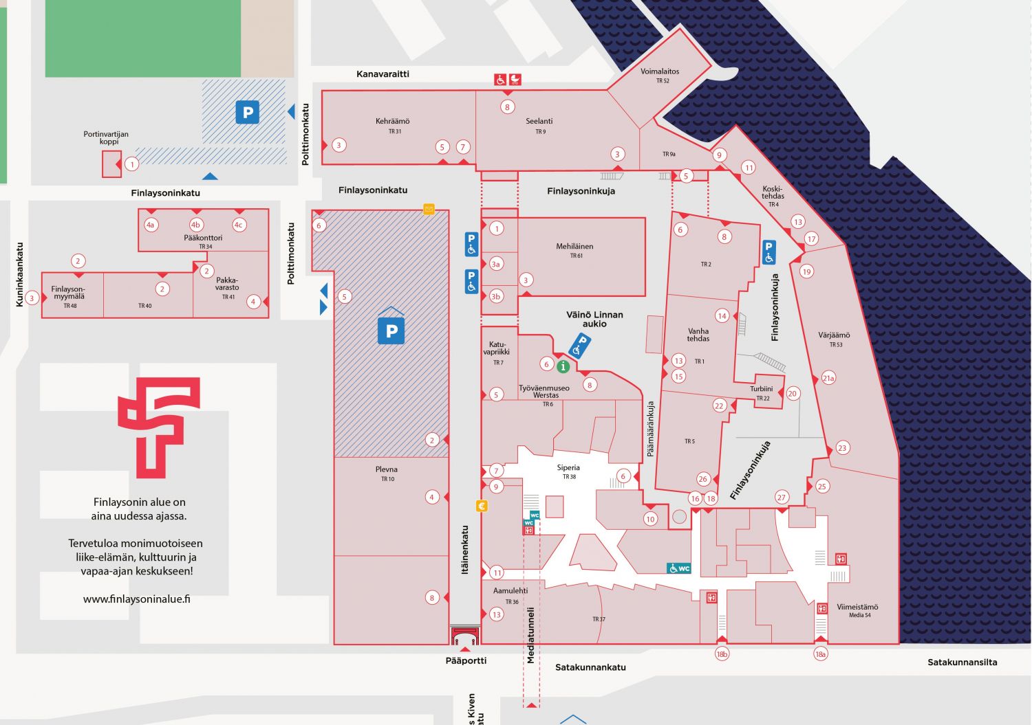 Perinteikäs Finlaysonin alue on vireä liike-elämän, vapaa-ajan ja kulttuuritapahtumien keskus, jossa toimivissa yli 100 yrityksessä työskentelee ja asioi päivittäin tuhansia ihmisiä. Alueen useat ravintolat ja kahvilat mahdollistavat maukkaat lounas- ja kahvihetket. Finlaysonin alueen vanhat tehdasrakennukset tarjoavat yrityksellesi uniikin toimintaympäristön Tammerkosken maisemissa. Finlaysonin alue on helposti saavutettavissa omalla autolla, julkisin kulkuvälinein ja kevyellä liikenteellä. Keskustori ja rautatieasema ovat kävelymatkan etäisyydellä. Innovation Home ja Varma tarjoavat yhdessä 1-8 hengen yrityksille upeita yhteisöllisiä tiloja Finlaysonin alueella monipuolisilla palveluilla ja businessmahdollisuuksilla. Haluatko kuulla lisää? Ota yhteyttä: Hanna Rinta, p. 040 831 6778 / innovationhome.fi