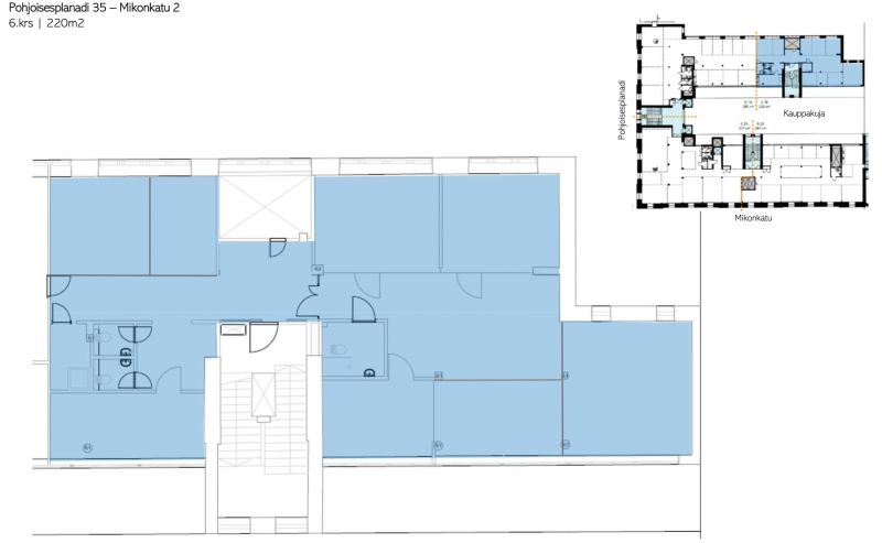 Gaselli-korttelin Eteläpäädyn kulmassa oleva, kuudennen kerroksen toimistotila loistavalla paikalla Helsingin ydinkeskustassa.