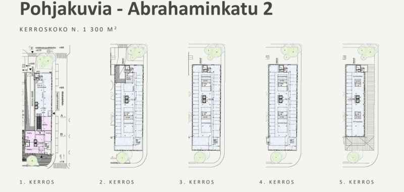 Abraminkatu 2 uudisrakennus tarjoaa korkeatasoiset toimitilat poikkeuksellisella edustuspaikalla. Kiinteistö on arvioitu valmistumaan 2026 loppuvuosi - 2027 alkuvuosi välille.