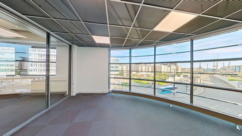 Toimistosta on huikeat näkymät Ruoholahden ja Jätkäsaaren suuntaan. Tilat ovat muokattavissa asiakkaan tarpeiden mukaan.