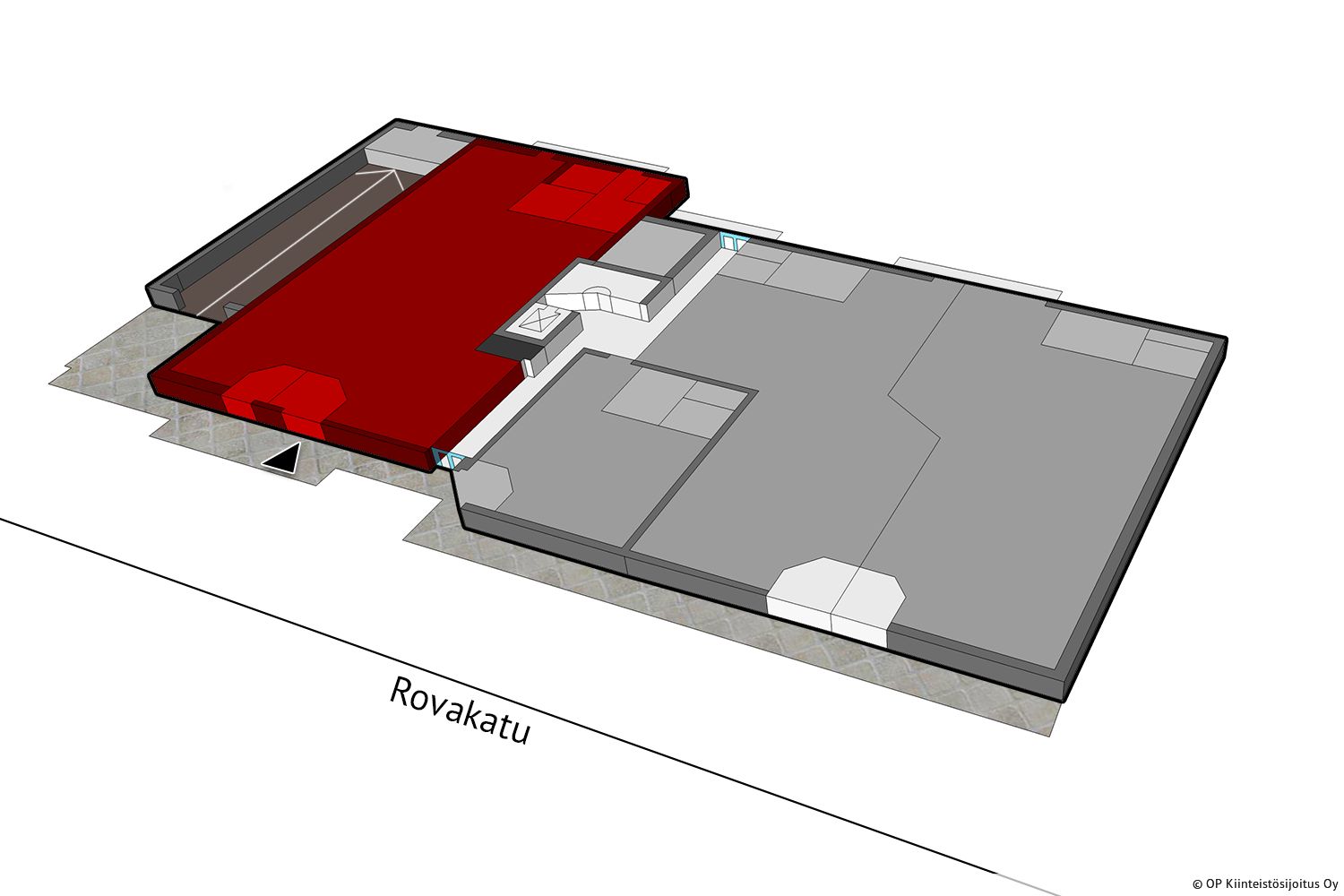 Vuokrattavana avara liiketila asuintalon katutasossa. Toimitilassa on avotilaa, suuret ikkunat kadulle ja keittiöllä sekä vessalla varustettu taukotila. Kiinteistöllä on hyvä sijainti Rovaniemen keskustassa, lähellä muita palveluita ja mm. Keskuskenttää.