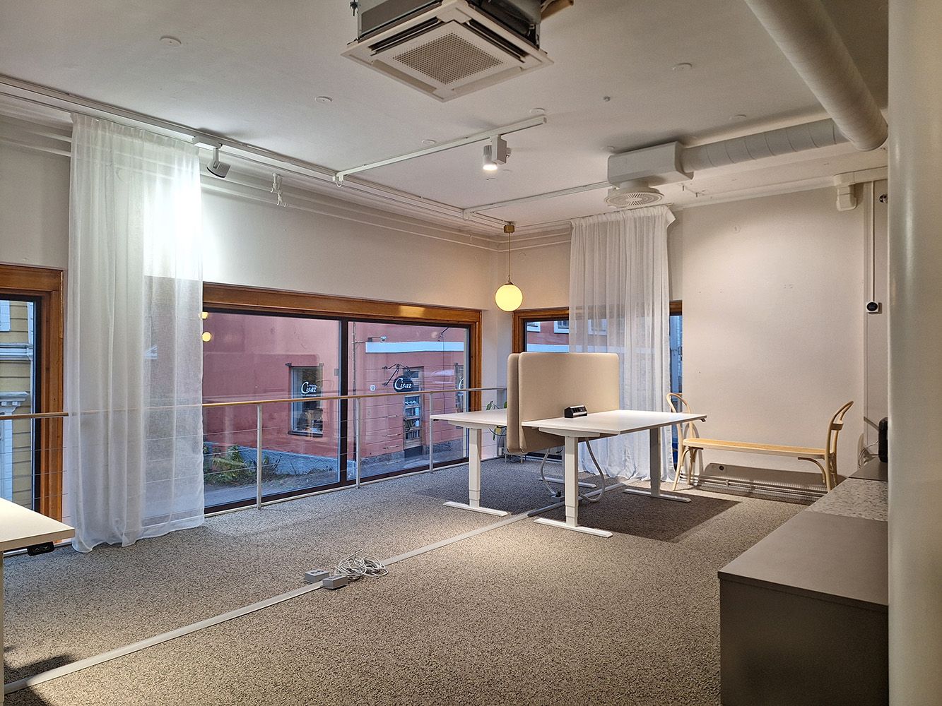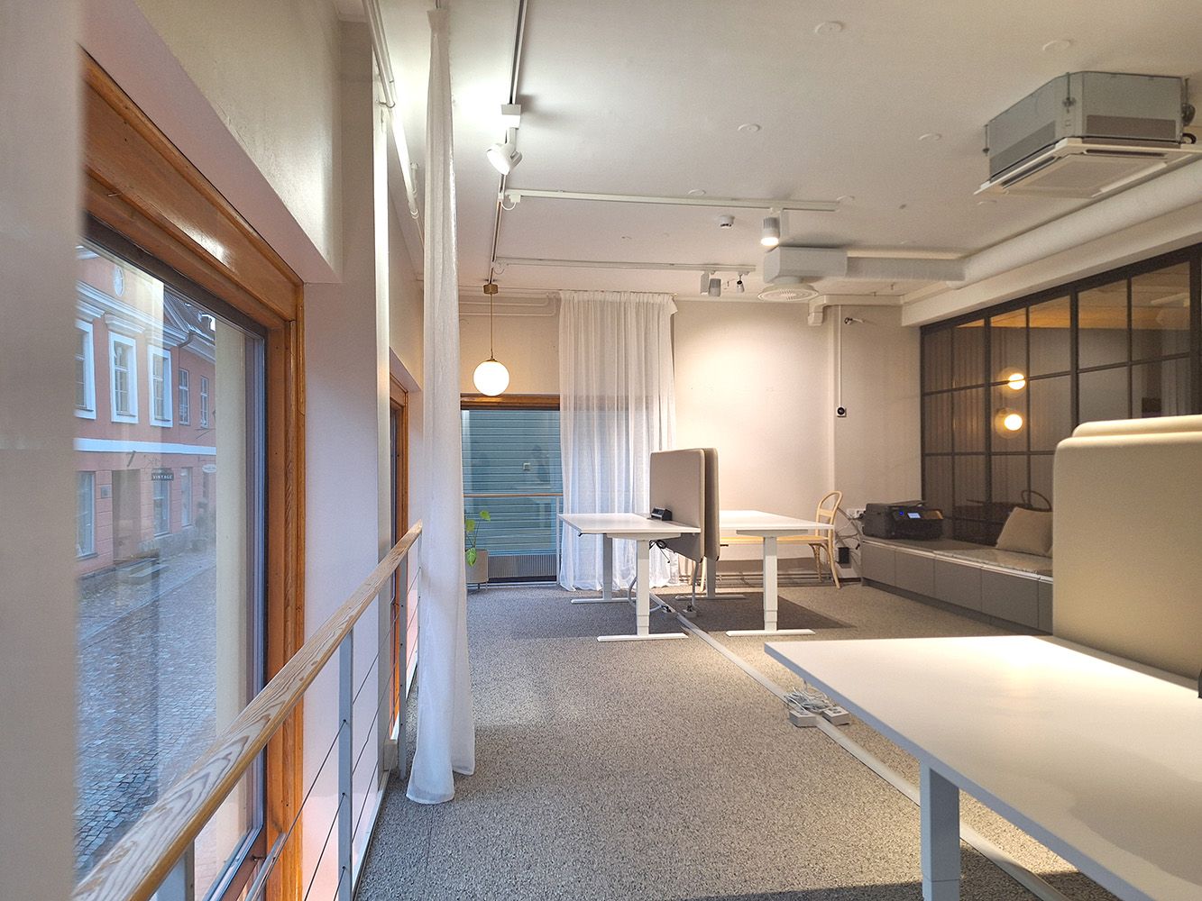 Valoisa, rauhallinen ja tyylikkäästi sisustettu tila, josta idylliset näkymät Porvoon vanhan kaupungin kävelykadulle. Tila soveltuisi erinomaisesti esim. sisustusalan showroomiksi tai muunlaisen yrityksen esittelytilaksi. Tilassa on tällä hetkellä yhteensä 4 tyylikästä työpistettä, neuvotteluhuone ja keittiötila sekä wc.
