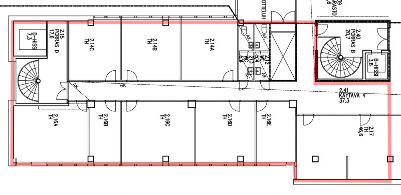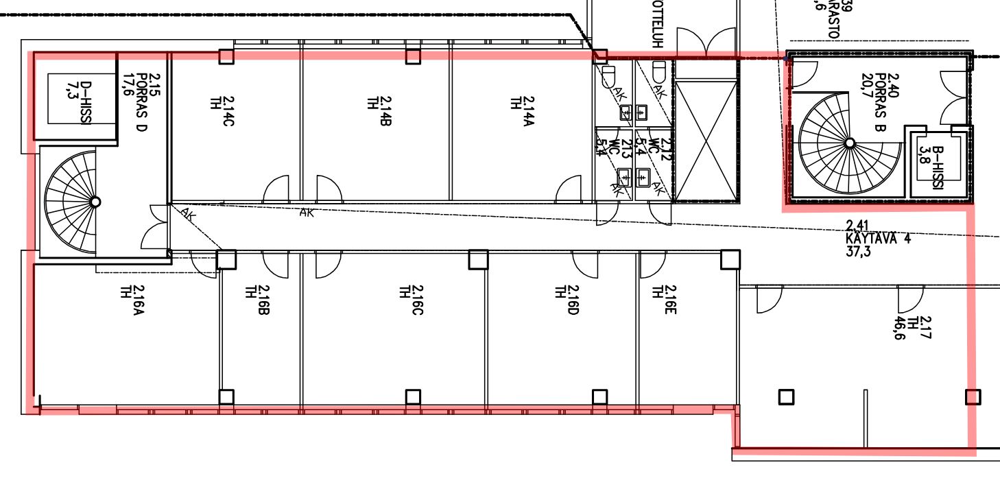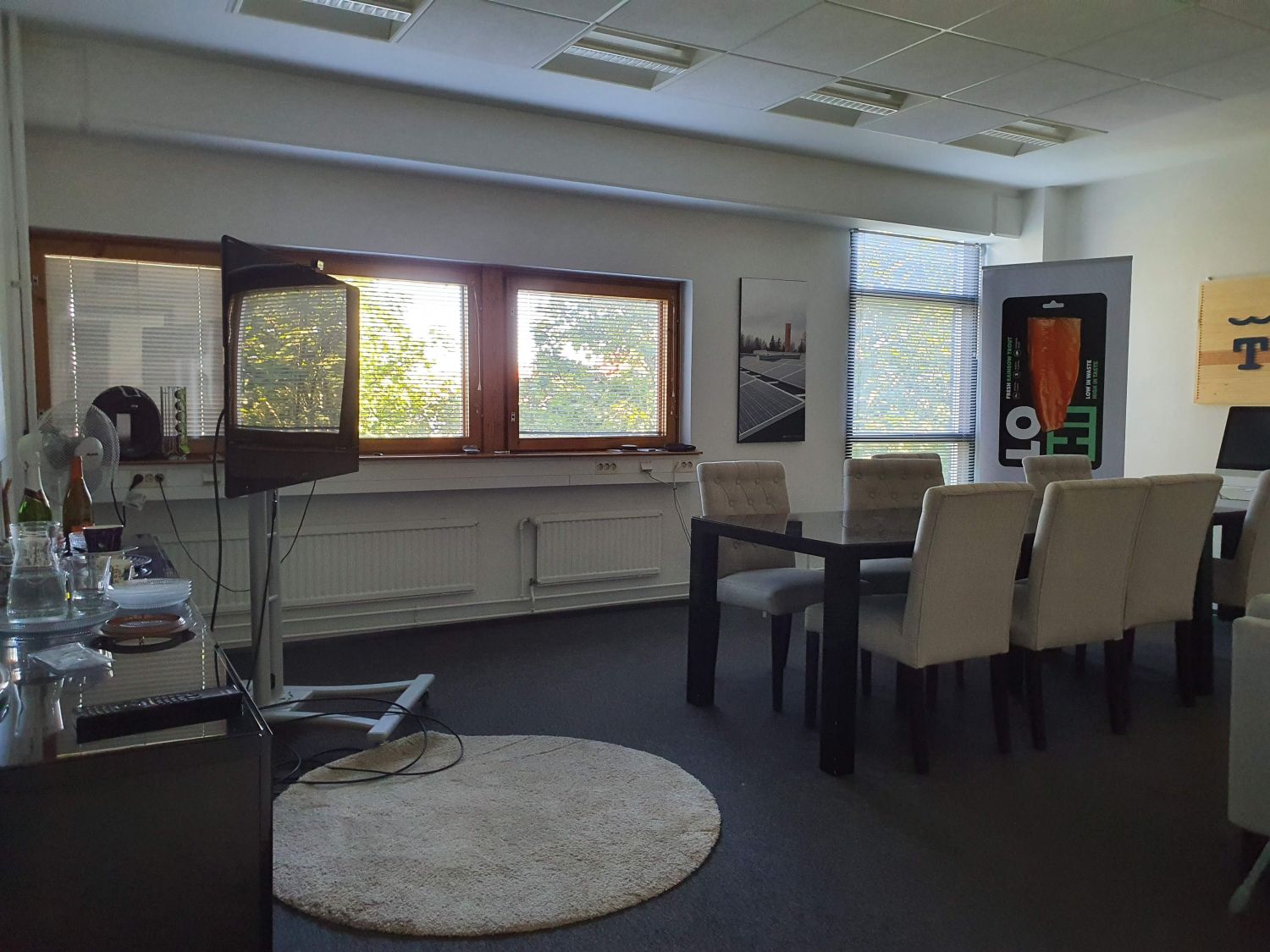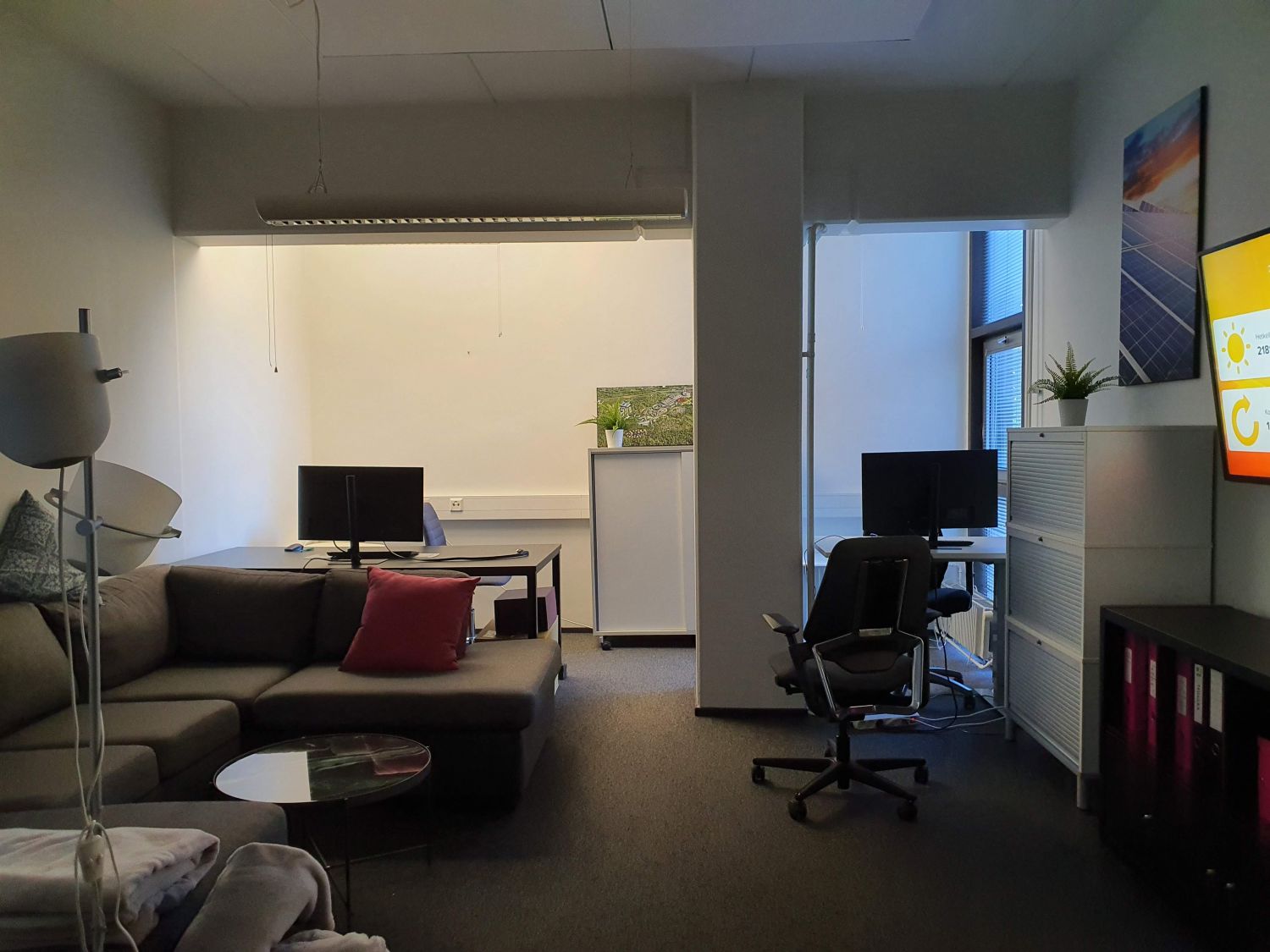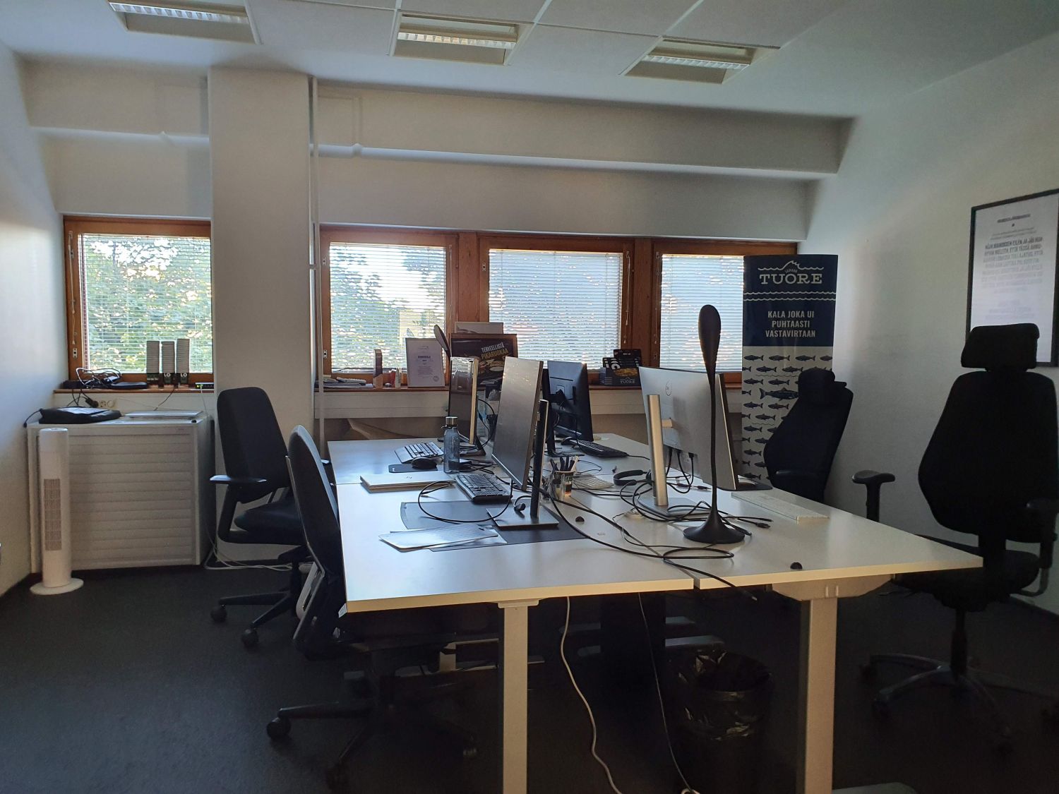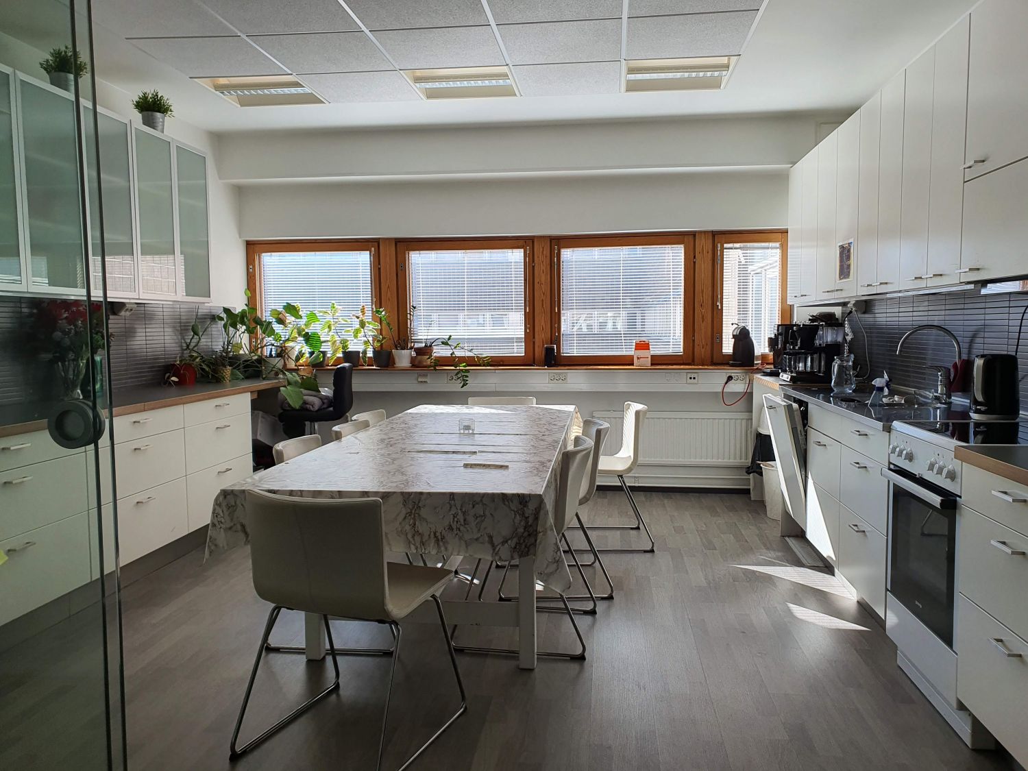 Tilakokonaisuuteen kuuluu 8 erikoikoista toimistohuonetta, lounge-tila, reilun kokoinen neuvottelutila, taukokeittiö ja pari wc-tilaa.