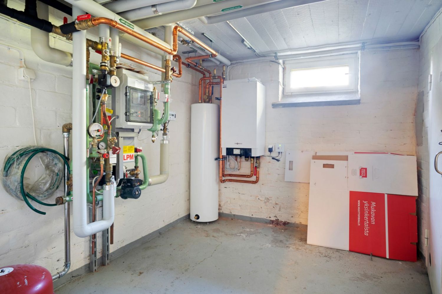 Lämmitysmuodot ovat kaukolämpö, ilma / vesi lämpöpumppu.