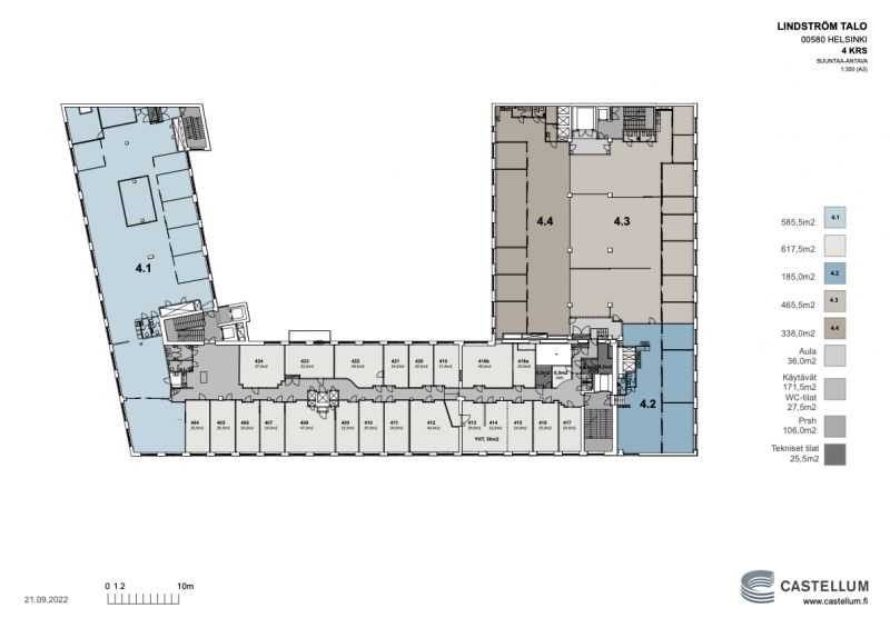 Muuttovalmis 3. kerroksen 586 m² toimistotila, jossa on useita huoneita sekä avotilaa talon houkuttelevalla alkuperäisellä puolella.