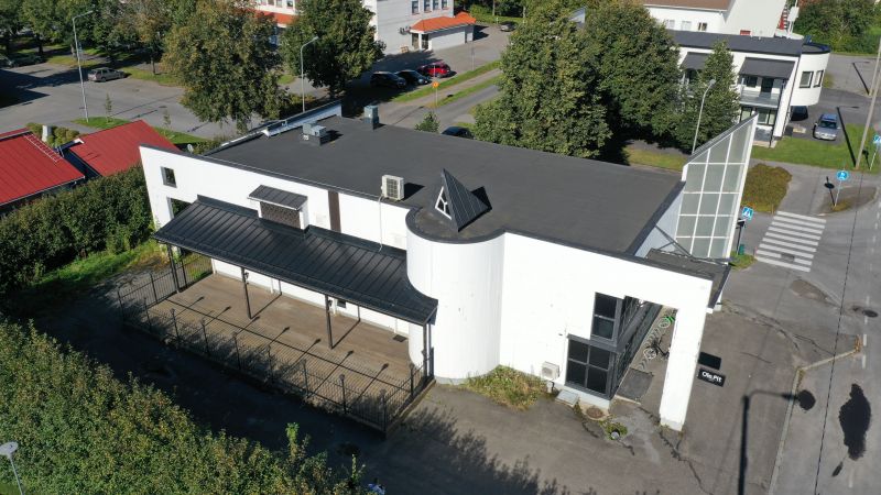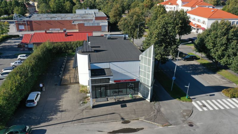 Arkkitehti Veijo Martikaisen suunnittelema tyylikäs rakennus. Kahdessa tasossa korkeaa monikäyttöistä tilaa. Kellarissa matalaa varastotilaa (vapaa korkeus 226cm). Käyttöneliöt 427 m² . Markiisilla ja katoksella katettu terassialue 91 m² (ei käytössä kuntosalilla) ja lisäksi matala kellarivarasto 220 m². Käyttöneliöiden ulkopuolella on myös Exit portaikko noin 45 m² ja ovellinen kylmä roskakatos noin 20 m².