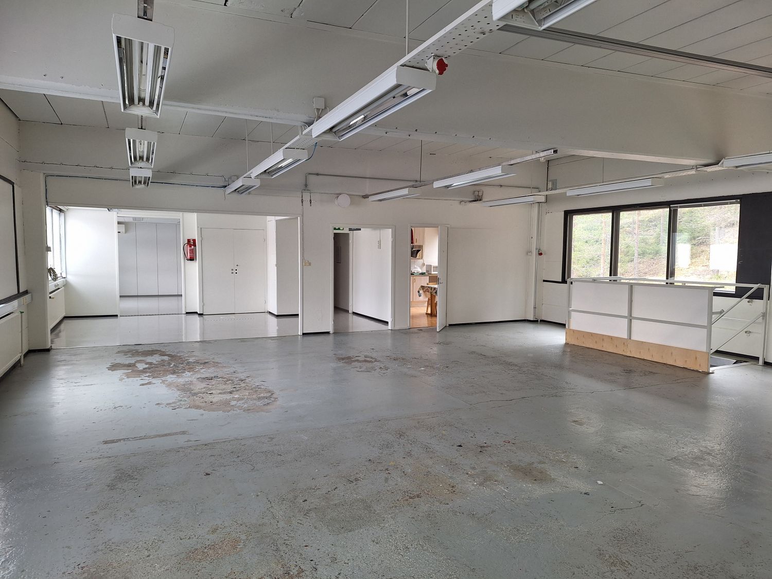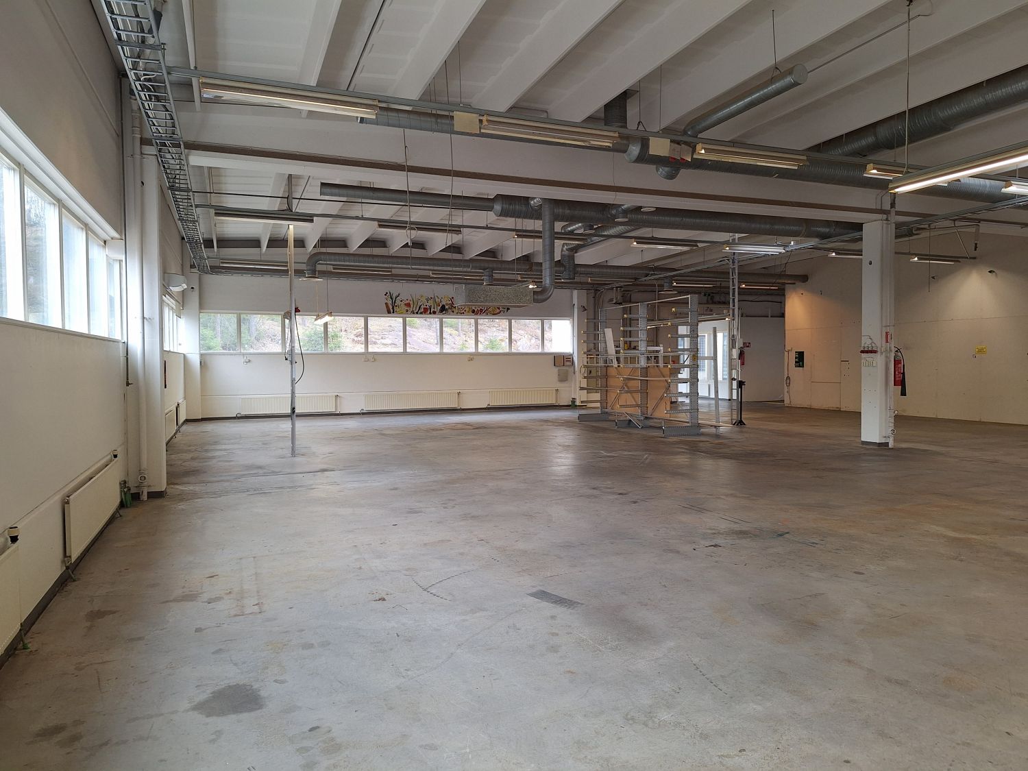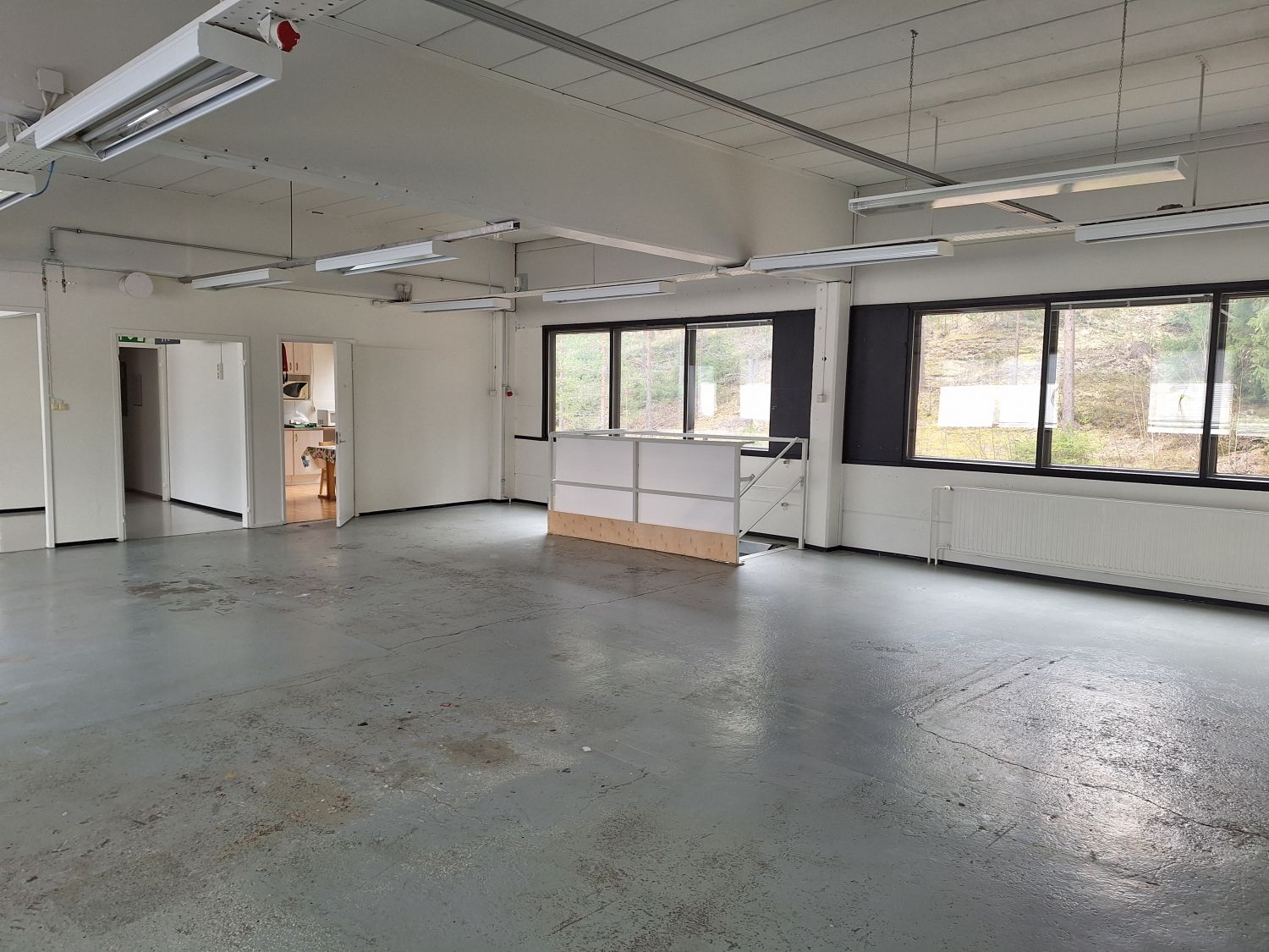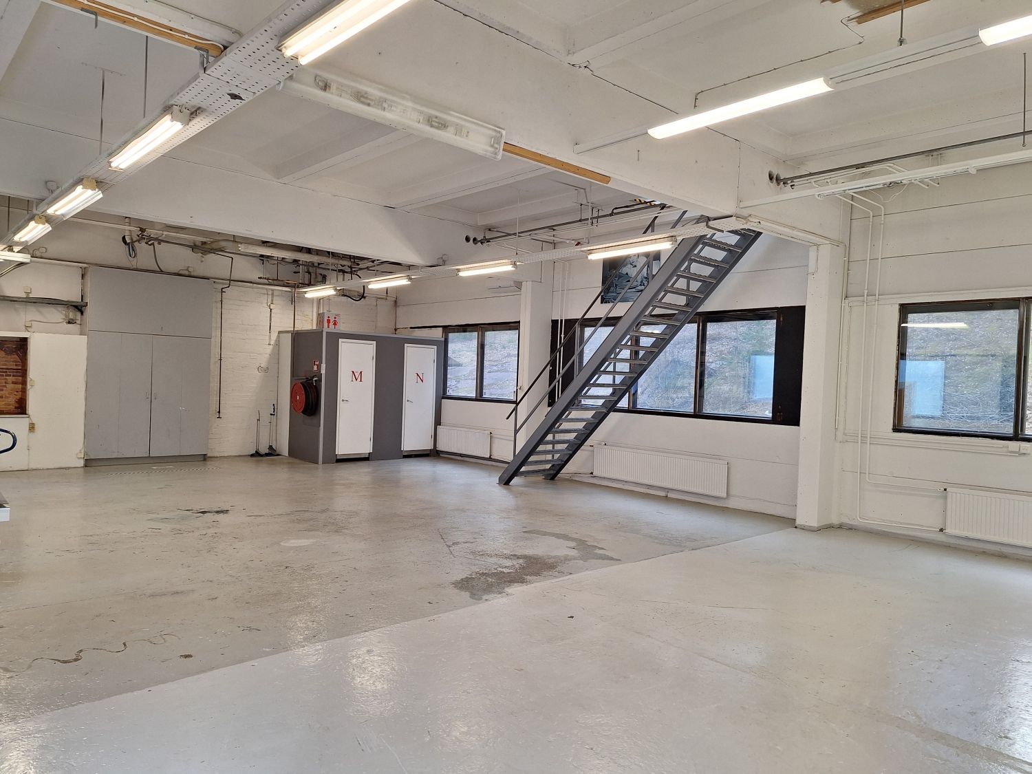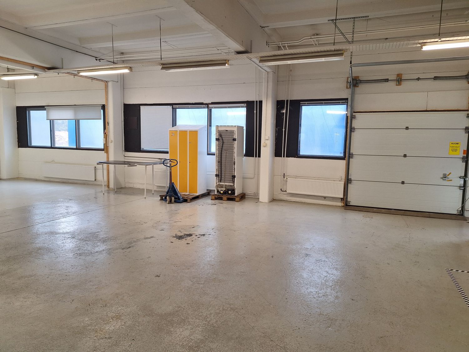Avointa tilaa, voimavirtaa, nosto-ovet, ei lattiakaivoa.