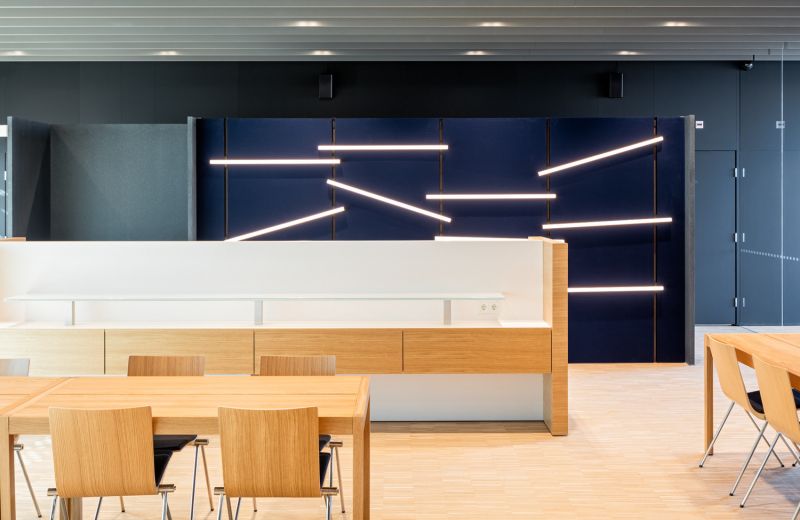 Talossa henkilöstöä palvelee lisäksi vastaanotto näyttävän pääaulan yhteydessä ja kaksikerroksinen parkkihalli.