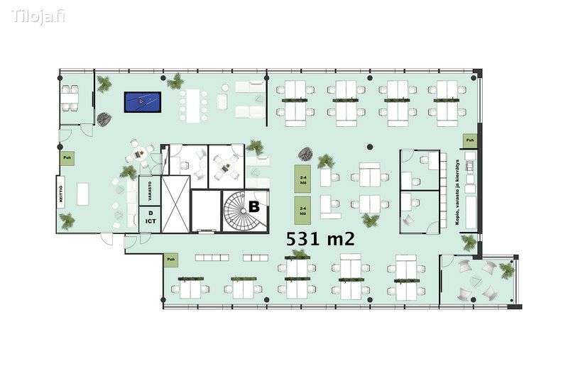 Vuokrattavana monipuolinen ja muunneltava 531 m² toimistotila Pohjois-Tapiolassa. Tila suunnitellaan vastaamaan yrityksenne yksilöllisiä tarpeita yhdessä talon oman sisustusarkkitehdin kanssa. Toimistotila sijaitsee täysin saneeratussa kiinteistössä, joka vastaa myös vaativimpien käyttäjien tarpeisiin.