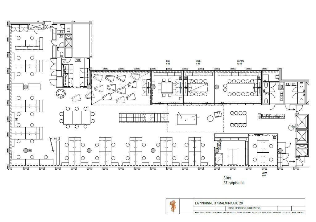 Vuokrataan erittäin laadukasta ja tasokasta toimistotilaa Kampista, vuokrattava tila on 3. kerroksen 525m2 toimistotila.