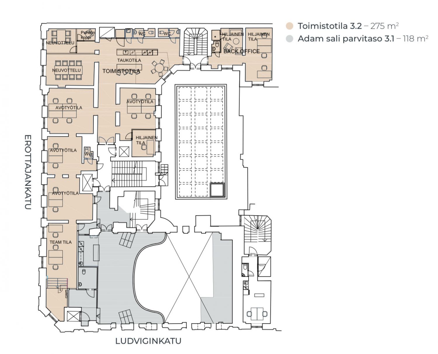Vuokrataan 3. kerroksen 393m2 toimistotila huippupaikalla. Tämä upea toimitila tarjoaa yrityksellesi koko kerroksen käyttöön Helsingin arvostetulla Erottajankadulla. Tila sijaitsee historiallisessa ja hyvin hoidetussa kiinteistössä, yhdistäen arvokkaan vanhan ajan tunnelman ja modernit toimistoratkaisut. Avarat ja valoisat tilat mahdollistavat monipuoliset käyttötarkoitukset ja muunneltavissa olevat pohjaratkaisut, jotka voidaan räätälöidä juuri yrityksesi tarpeisiin.