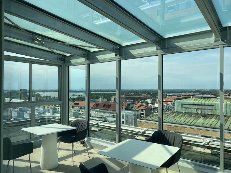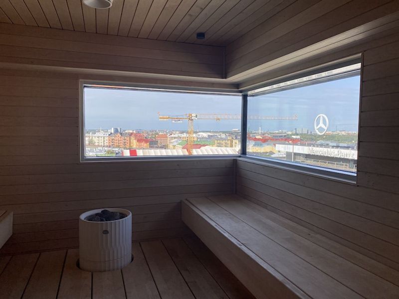 Talon ylimmästä kerroksessa upea Sky Lounge, jossa erikseen vuokrattavissa olevat kokous- ja saunatilat.
