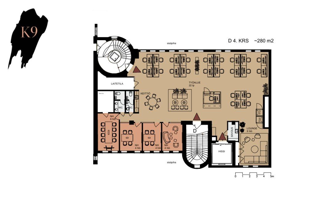 Vuokrattavana laadukas 280 m² toimistotila Helsingin Kallion ytimessä, Kaarlenkatu 9-11 (K9) kiinteistössä.