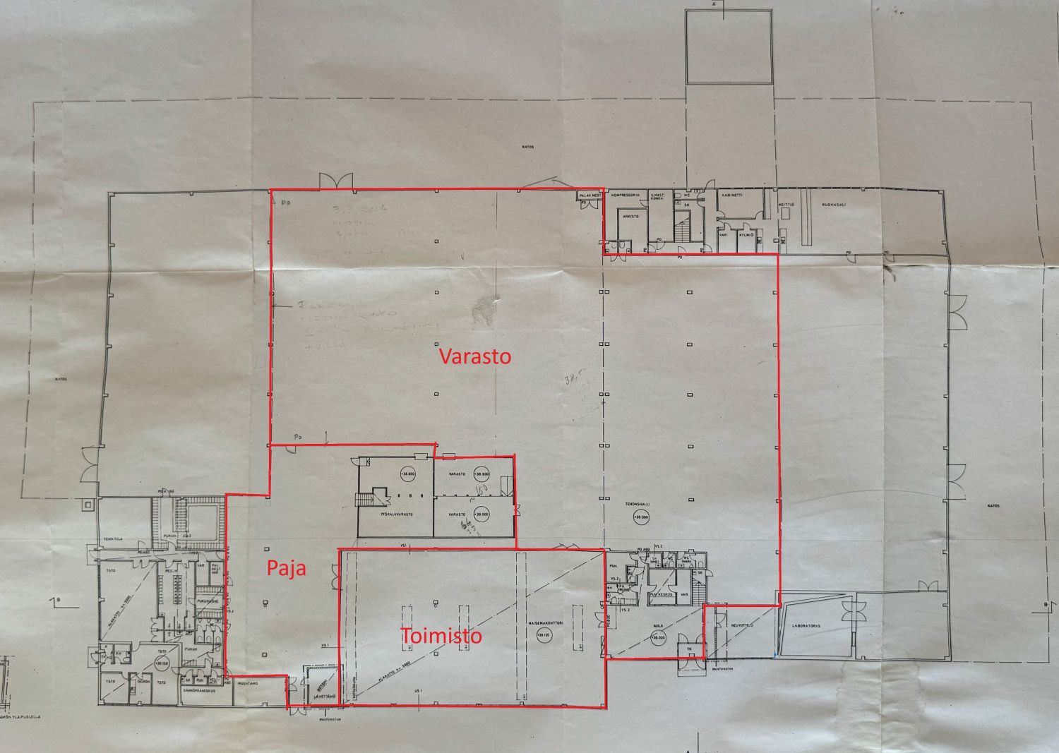 Maantason toimisto + Paja: 460 + 500 m2, alustava vuokrapyyntö 6 €/m2/kk + alv.