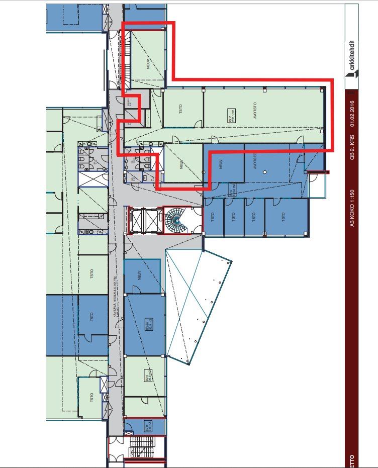 Vuokrattavana laadukasta toimitilaa Leppävaarassa, vuokrattava tila on 2. kerroksen 202,50m2 toimistotila.