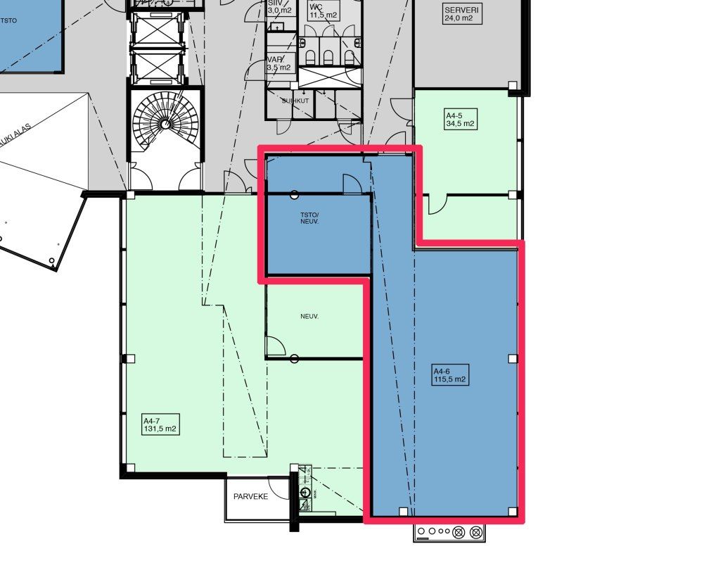 Vuokrattavana laadukasta toimitilaa Leppävaarassa, vuokrattava tila on 4. kerroksen 115,50 m² toimistotila.