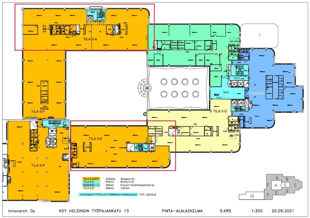 Vuokrataan modernia ja siistiä toimistotilaa Helsingin Kalasatamassa, joka valmistui keväällä 2018. Vuokrattavana on 5. kerroksen 469 m2 toimistotila. Pohjakuvassa vuokrattava tila on kohdassa 5E.