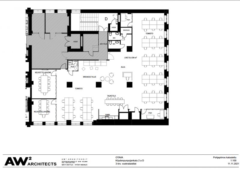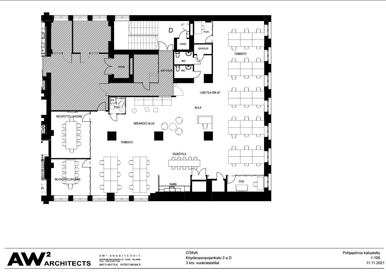 + Tilat: koostuu avotilasta, yksittäisistä huoneista ja neuvottelutiloista