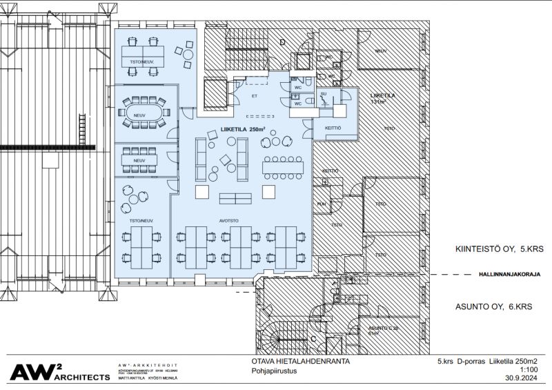 Kiinteistöstä vapaana 3. kerroksen tila 294 m² sekä 5. kerroksen 250 m². Lisätietoja tiloista: