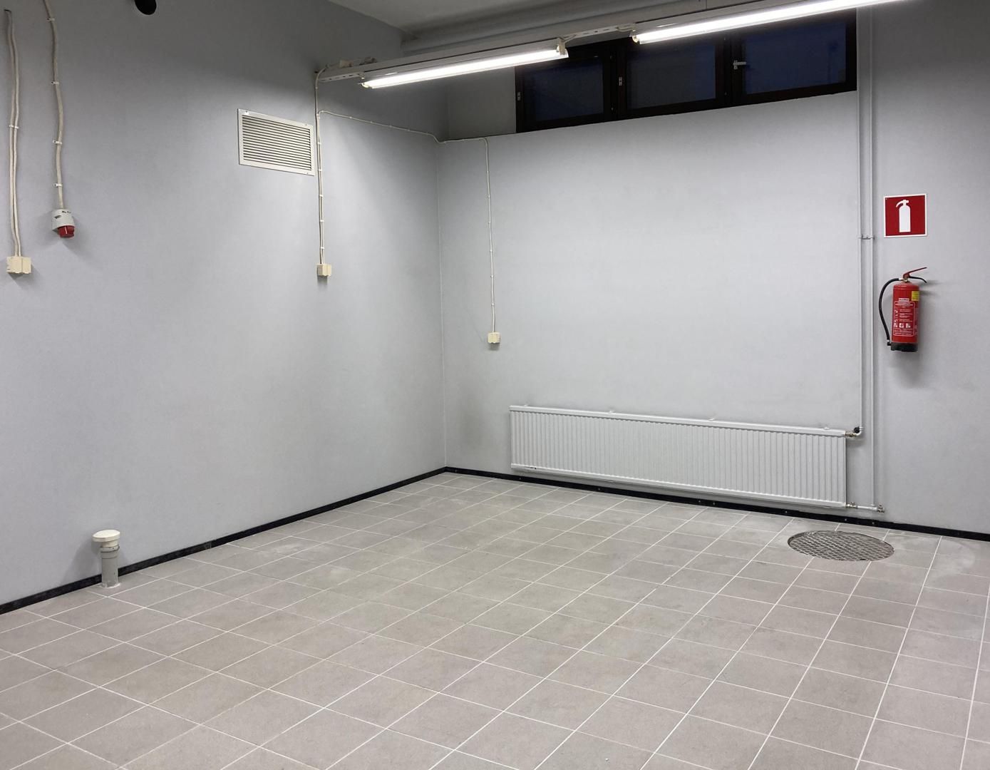 Laattalattiat, sisutusvalmiit seinät ja väliseinät, hyvä loisteputkivalaistus, koneellinen ilmanvaihto + teollisuustason ilmastointi kohdepoistoilla.