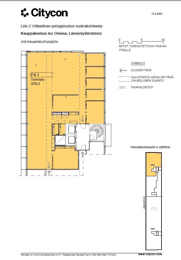 Vuokrataan Kauppakeskus Iso Omenasta, Matinkylästä 4. kerroksen 379m2 toimistotila. Toimistotila on Omenatorni A siivessä, A-rapussa.