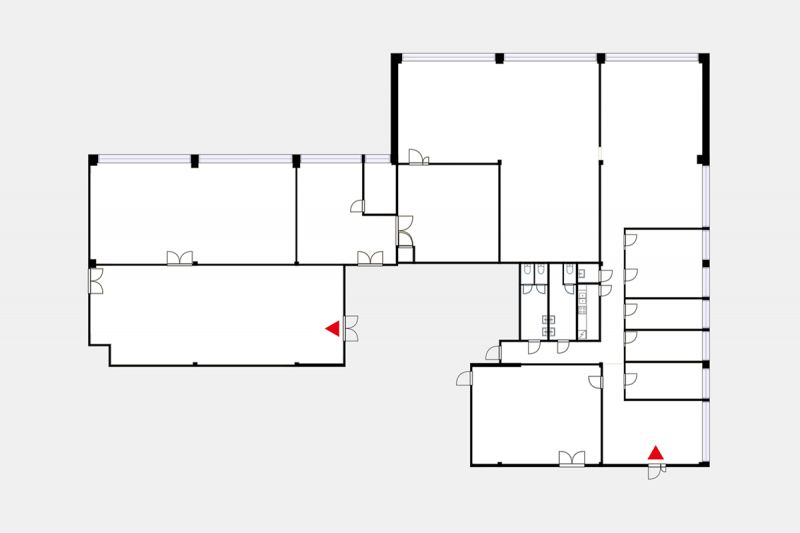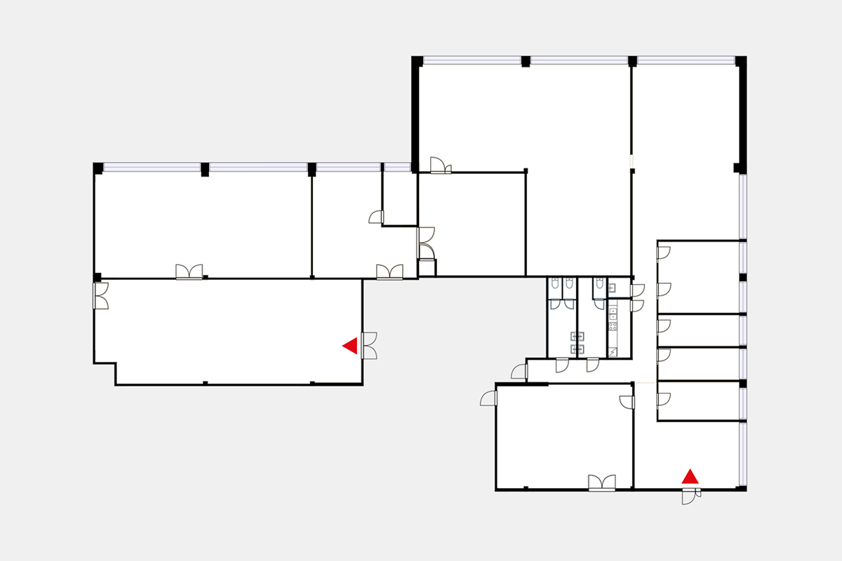 Tila nyt raakatilana ja siitä saa toteutettua lähes mitä vain. Tarvittaessa tilaa voi myös jakaa, siten, että perimmäisen osan vasemmalla jakaa pois tilasta (kuten nykyinen tilanne). E-portaan kautta tavarahissiyhteys talon lastauslaiturille.