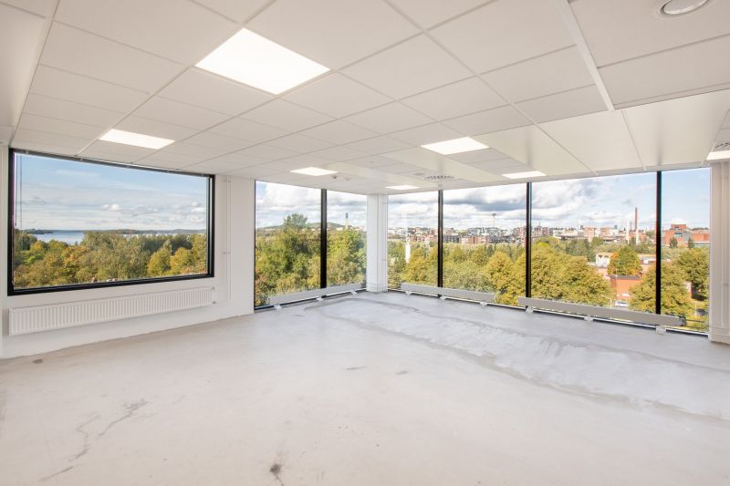 Upea 5. kerroksen maisematoimisto suurilla ikkunoilla ja mahtavilla näkymillä.